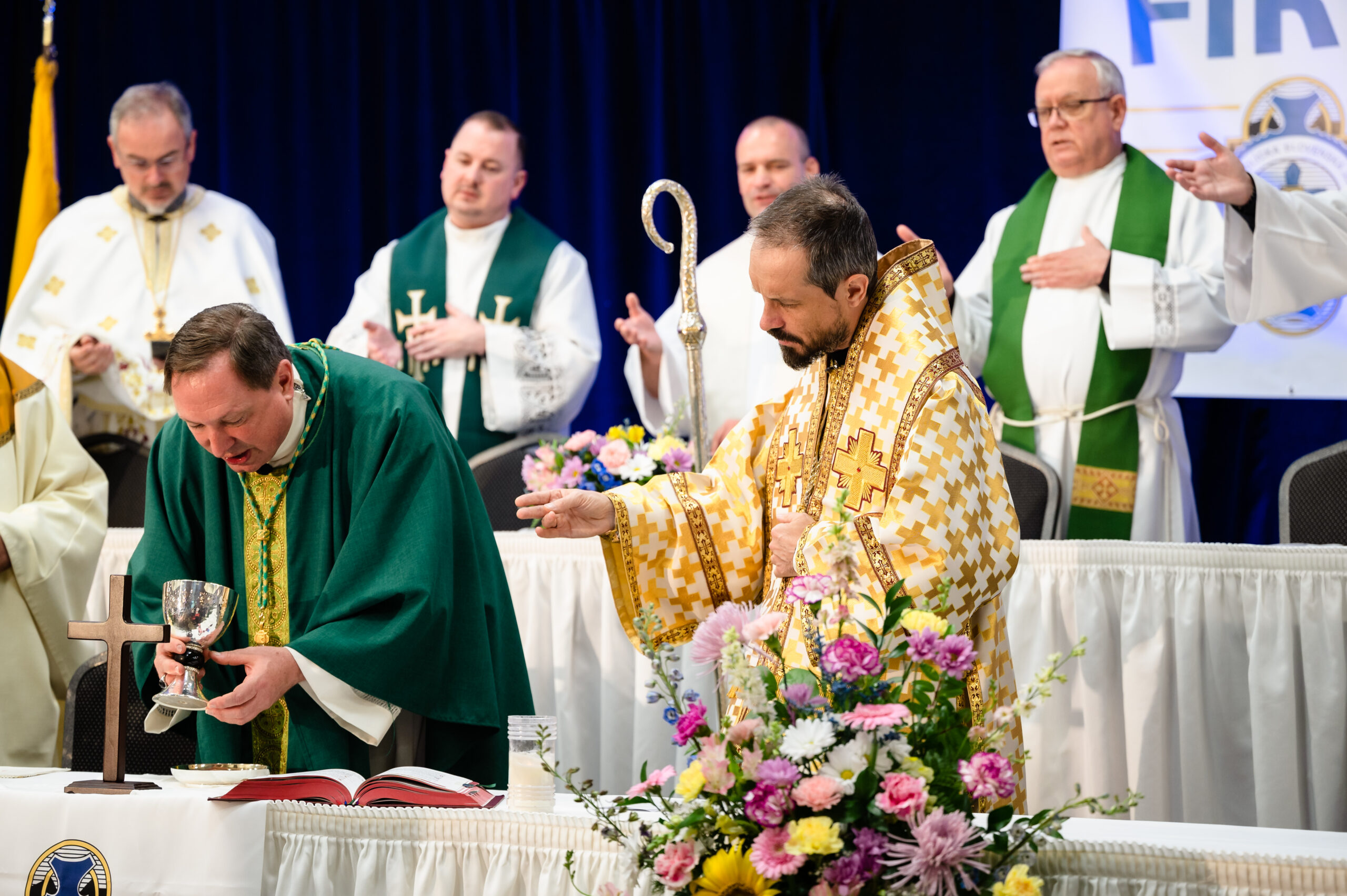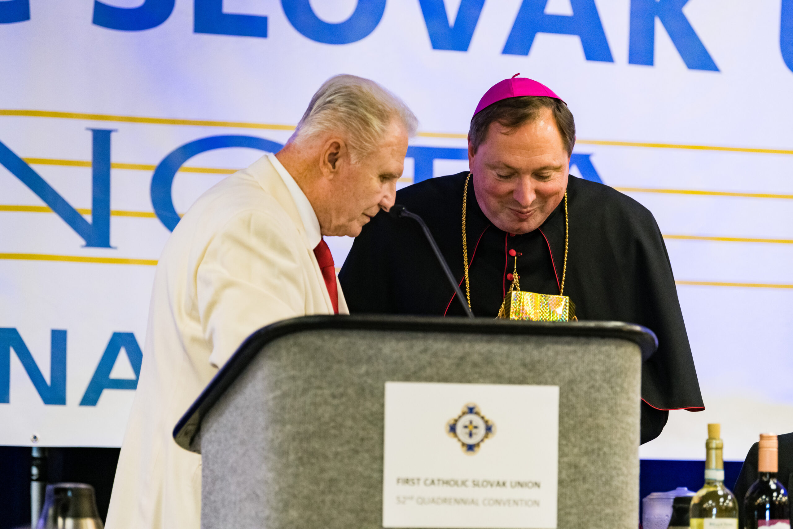 Appropriately, Sunday began with a con-celebration of Holy Mass, led by FCSU Protector, Bishop Larry J. Kulick from the Diocese Greensburg, PA. Mass concluded with a short welcome from Bishop Edward Malesic of the Cleveland and the Slovak hymn, Duša kresťanská (O Christian Soul), which honors SS. Cyril and Methodius.