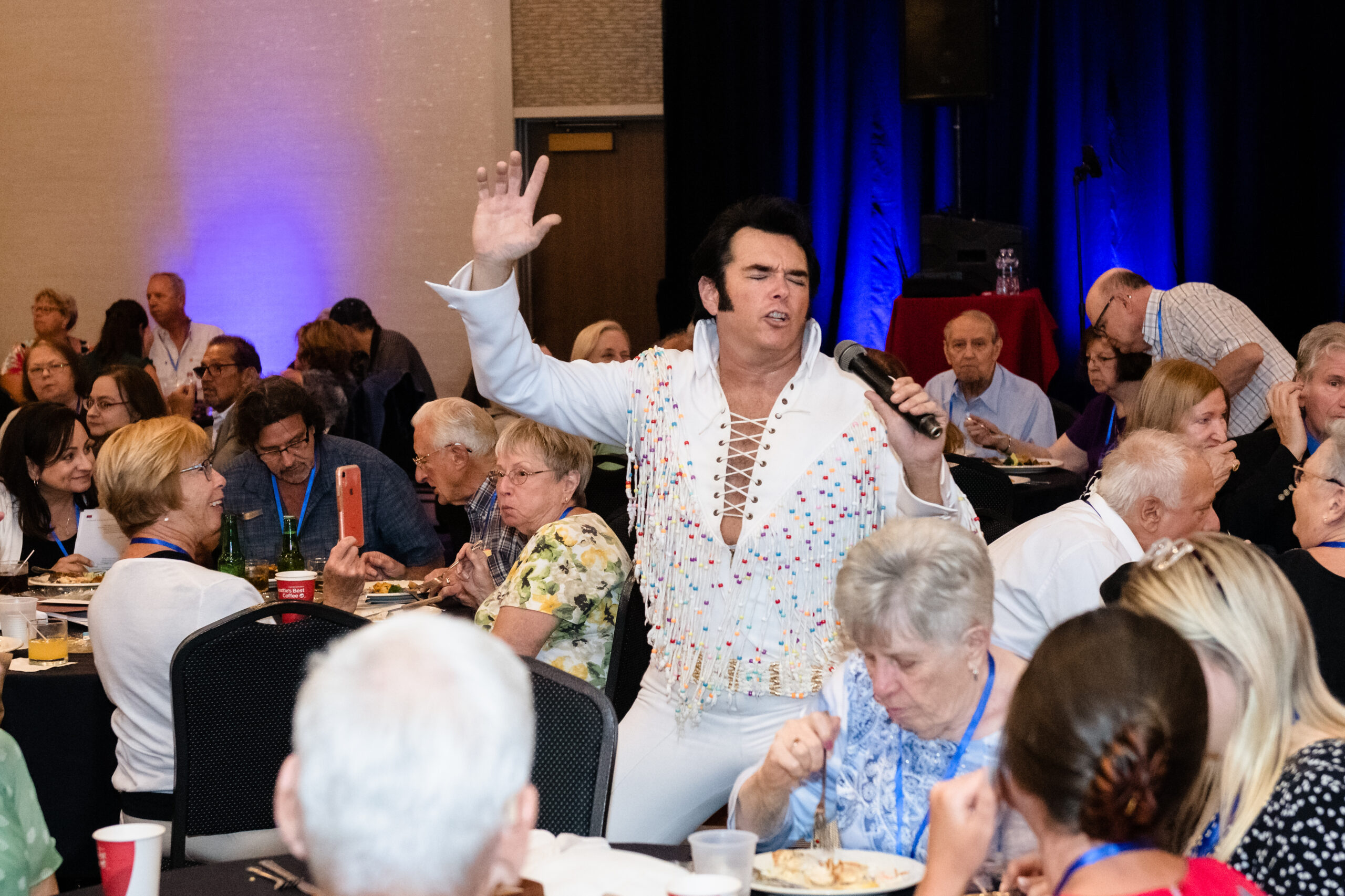 Saturday’s program featured an evening buffet with an Elvis Presley impersonator, followed by a night of socializing and casino play with fake dollars. Some big money rollers dressed up for the occasion, including Tom Ivanec and his wife Terri, the former editor of Jednota! Many concluded the evening with trips to rooms of various districts, and I was with a group which sang Slovak and Rusyn songs and enjoyed homemade klobasa (sausage).