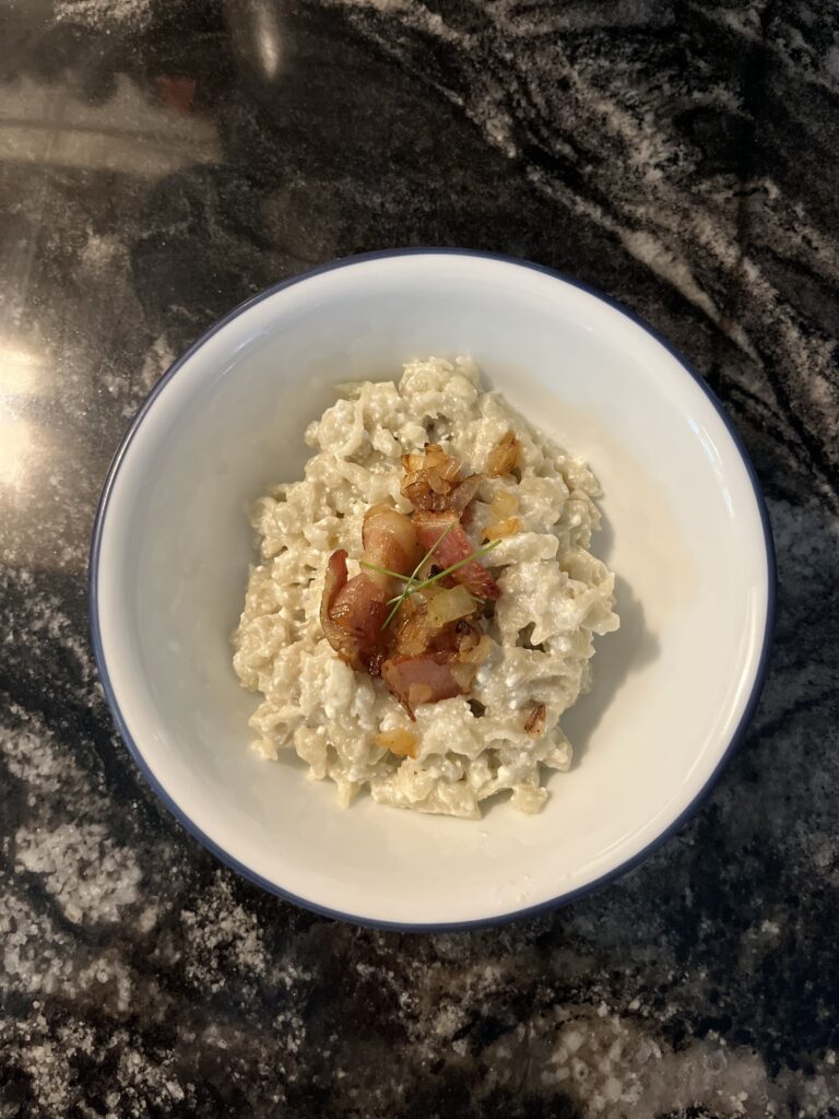 • Sauté your bacon and onions and set aside for later.