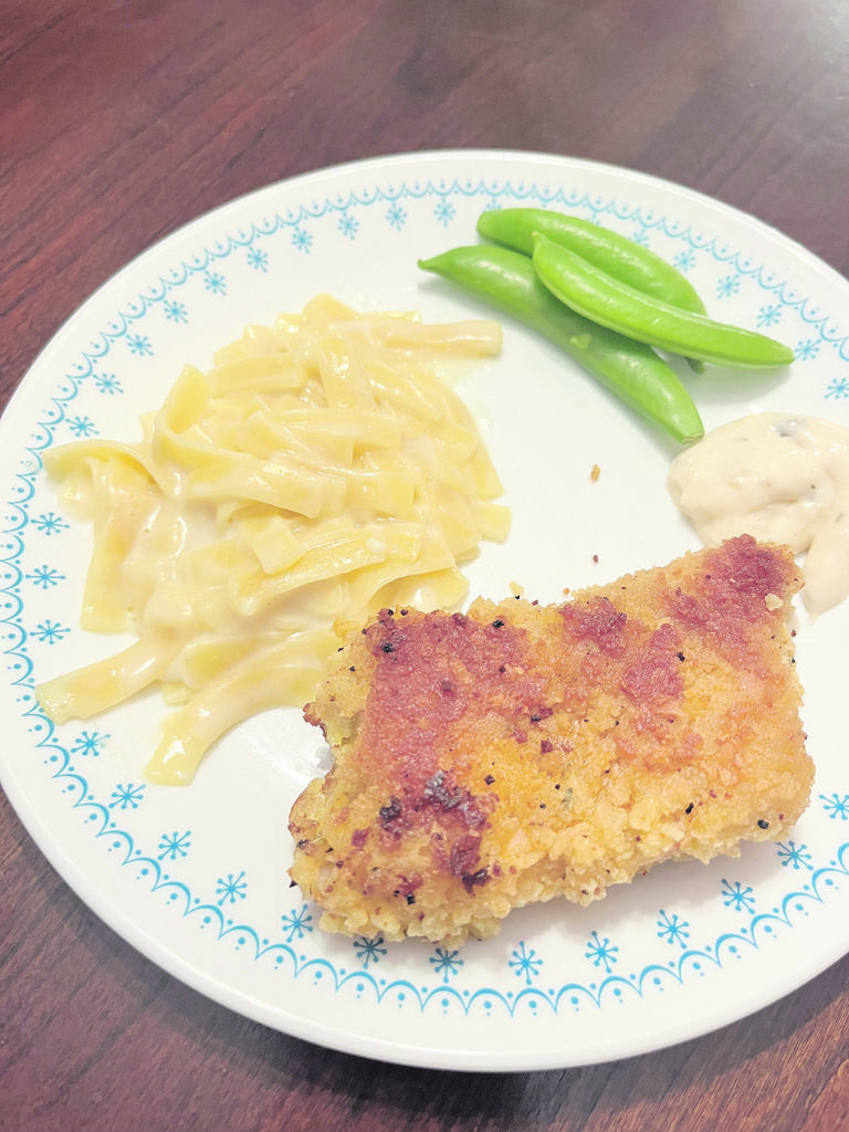 3 cups finely crushed corn flakes or panko breadcrumbs