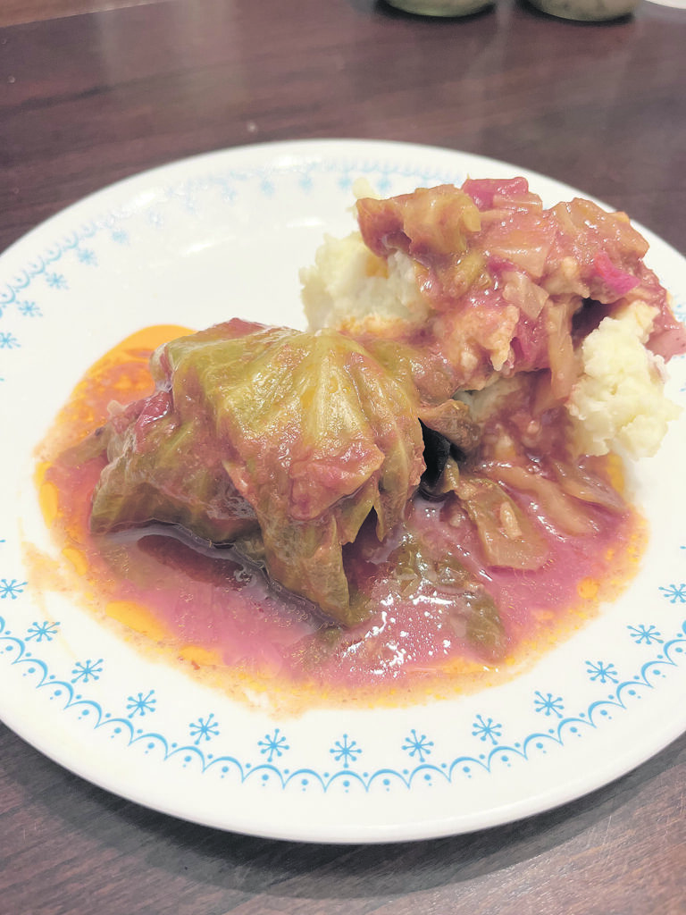 - Prepare the cabbage – Carefully remove the leaves from a head of cabbage, blanch them in boiling water for a few minutes until they soften, then set aside to cool. If you have a large cabbage, you’ll need about 18-20 leaves.